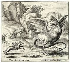 melynek oroszlánteste, sárkányfarka, és - hasonlóan az összes Baziliszkusz-ábrázoláshoz - kakasfeje van!
